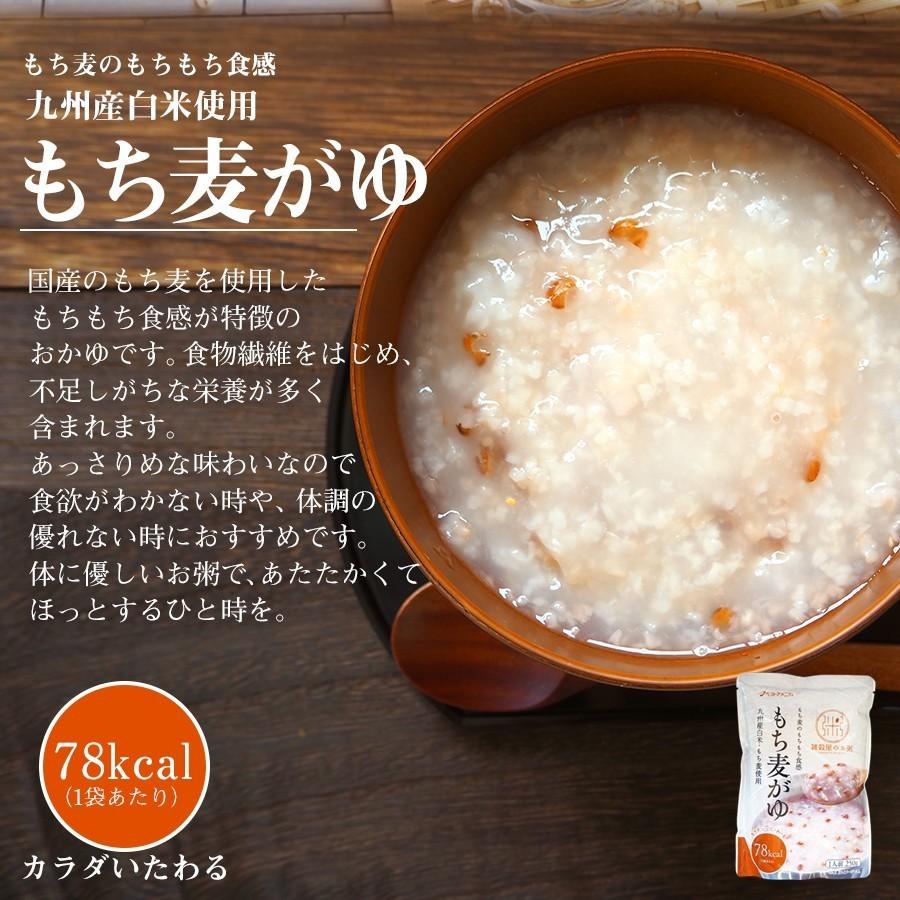 国産のもち麦を使用したもちもち食感が特徴のおかゆです。食物繊維をはじめ、不足しがちな栄養が多く含まれます。