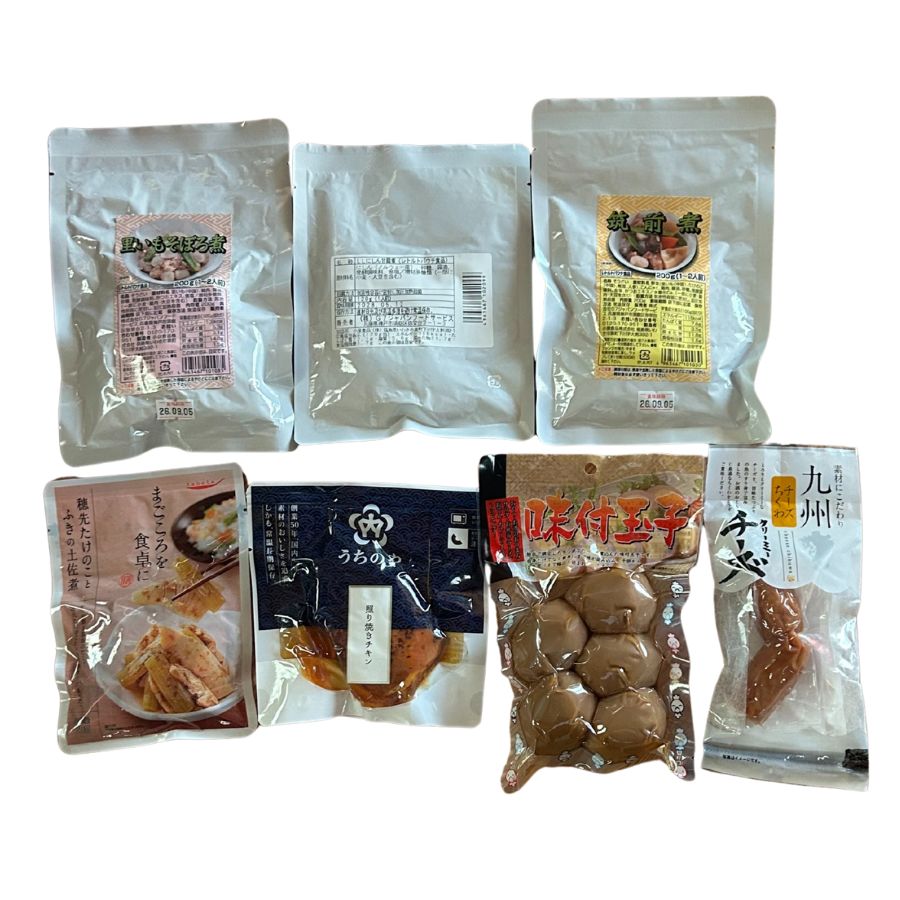 | セット内容 | ●にしん甘露煮 ●里芋そぼろ煮 ●照り焼きチキン ●穂先たけのことふきの土佐煮 ●筑前煮 ▼オマケとして▼ ●クリーミ-チーズ竹輪 ●味付玉子 |