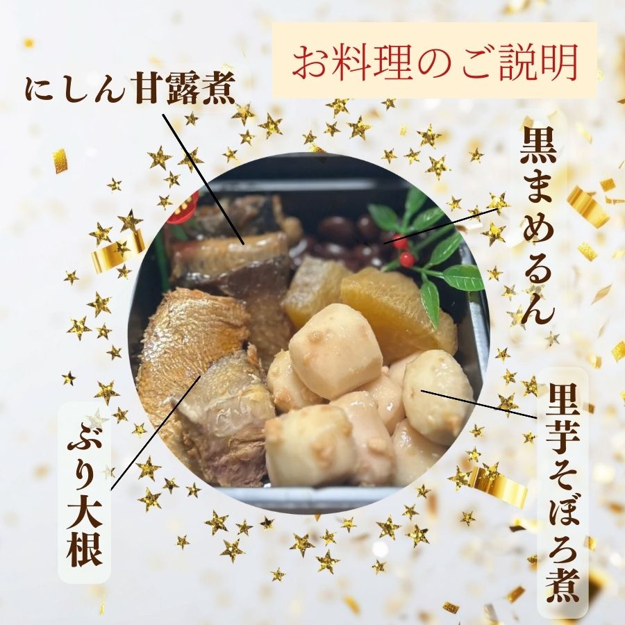 ごろっと具材を贅沢に使った定番の煮しめ。