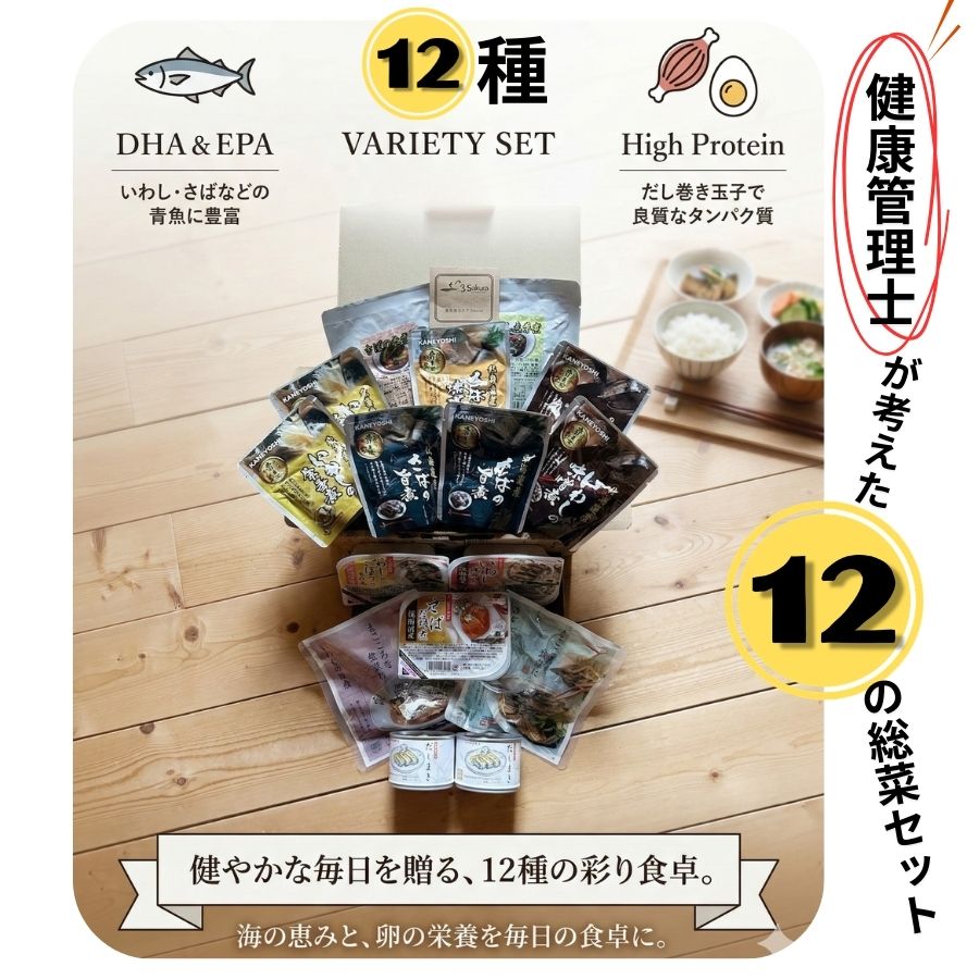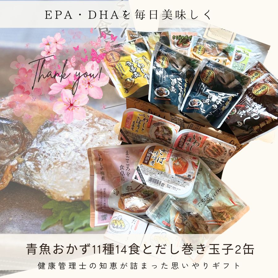 健康管理士の知恵が詰まった、体への思いやりを贈る 青魚おかず11種14食&だし巻き玉子2缶 の特別セット