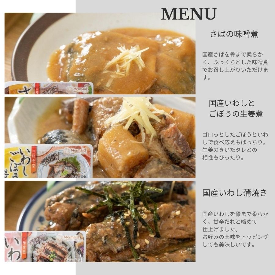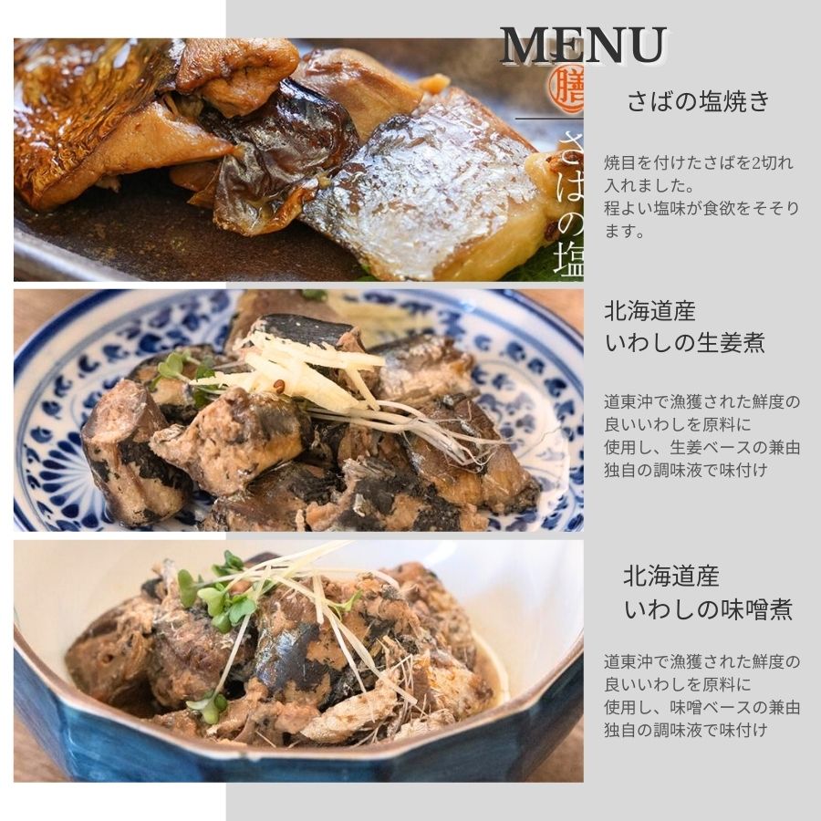 脂ののった国産魚を、味噌煮や生姜煮など飽きのこない11種類の味付けで仕上げました。